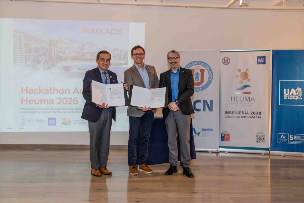 En un nuevo paso para fortalecer la vinculación entre la academia y la industria, Arcadis firmó convenios de colaboración con la Universidad Católica del Norte (UCN) y la Universidad de Antofagasta (UA), instancia que además marcó el lanzamiento oficial de la Hackathon Arcadis-HEUMA, una iniciativa orientada a abordar desafíos reales del territorio mediante soluciones innovadoras con foco en sostenibilidad.